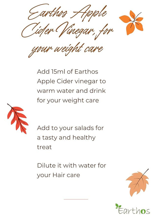 Earthos Apple Cider Vinegar 500ml – Raw & Unfiltered | With Mother for Weight Loss & Detox